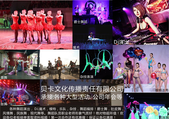 4.貝卡舞蹈,我們?yōu)槟峁┮粭l龍式的服務(wù),會(huì )幫您完成夢(mèng)想。 我們將為您呈現最優(yōu)質(zhì)的晚會(huì )節目,讓您成為晚會(huì )中最耀眼的明星。